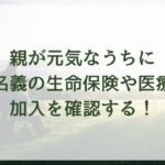 親が心身ともに元気なうちに、子供名義の生命保険や医療保険を確認した上で、不要であれば途中解約したり、見直しすることをオススメします。