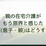 「親の在宅介護がもう限界(無理)と感じた家族(息子・娘)はどうする?具体的な対処方法を紹介」では、親の在宅介護に限界(無理)を感じている主な介護者(息子・娘・家族)へ向けて、現実的で心に寄り添ったアドバイスを、わかりやすい言葉でお伝えしています。